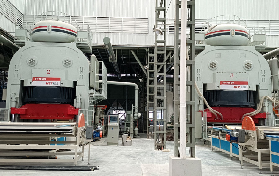 The line includes one set of HLT YP6209 press and one set of YP10090 press, which are currently the most popular models in the market, a DLT 4.0 Energy Efficiency Digitized and Intelligent wide-body firing kiln, a high-efficiency self-circulation five-layer dryer, a glaze dryer and other auxiliary equipment.