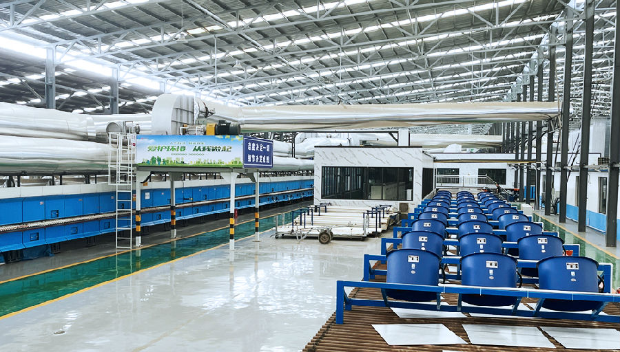 On February 18, 2022, the intelligentproduction line for sintered stones/large slabs built by HLT&DLT for HenanZhongqi Ceramics was successfully launched. It has been operating continuouslyever since. Significantly,this is a wide-body kiln with a fuel composition of 60% hydrogen, an innerwidth of 3.1 m, and a current daily production of 38,000 . This marks another breakthrough by DLT in low-carboncombustion technology.