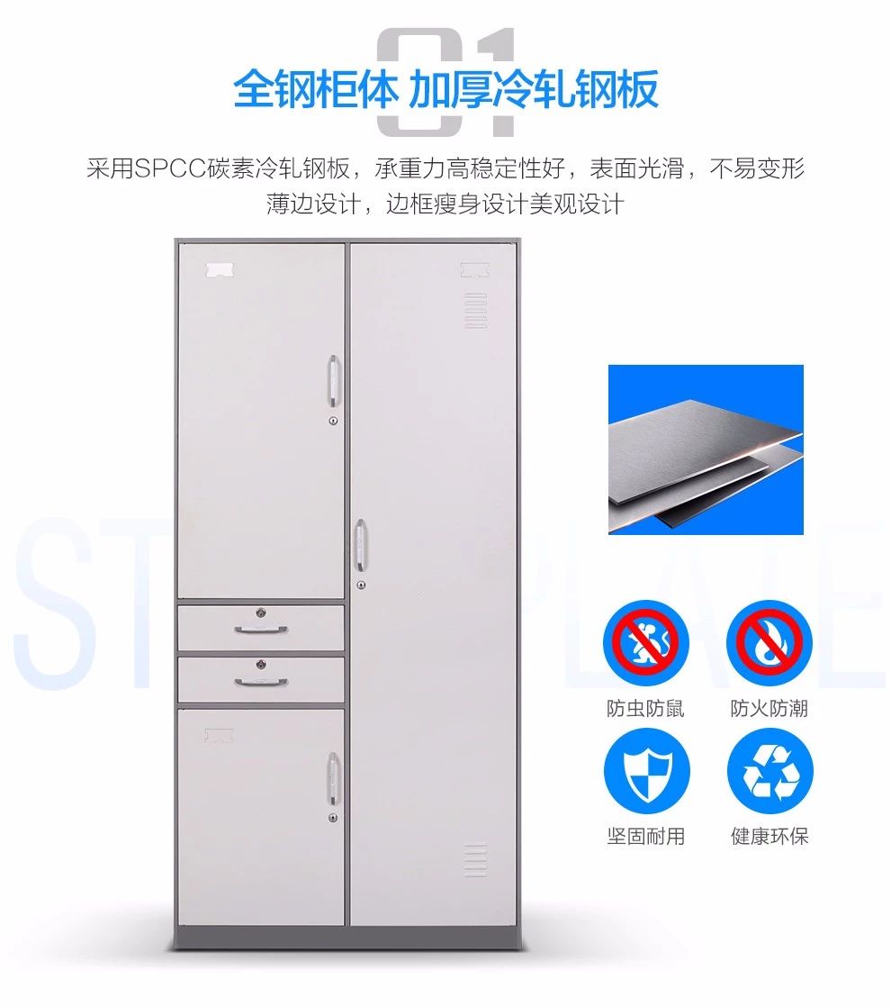 了解文件柜的材質較為重要,一般來說鋼制的文件柜選用可塑性好的優質冷軋鋼精裝盒板,其厚度一般為0.6 毫米以上,經模具化鈑金流水線,酸洗磷化等十幾道工序精工而成,具有防生銹,耐壓強度大,抗沖擊,不易變形的優勢。