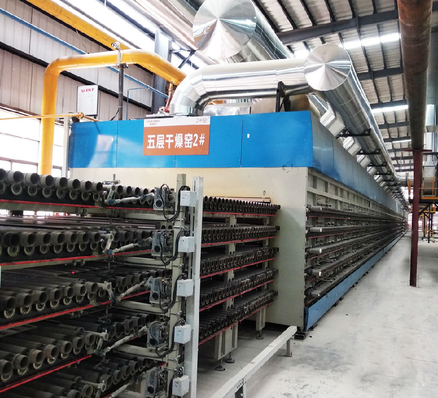 此條生產(chǎn)線(xiàn)應(yīng)用了德力泰設(shè)計(jì)完美的DHR余熱回收系統(tǒng)、KHI保溫系統(tǒng)等最新技術(shù),為窯前干燥和五層干燥提供了足夠的熱源,加上該干燥窯有獨(dú)特的雙出口供熱風(fēng)機(jī)和自循環(huán)結(jié)構(gòu),不用煙氣,不點(diǎn)槍?zhuān)耆酶G爐冷卻余熱干燥,不但密封性好,干燥效率高又節(jié)約場(chǎng)地。