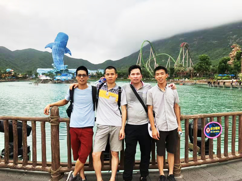 豪華大巴從不同方向魚貫而出,載著大家美好的心情,一路歡聲笑語,激情澎湃,伴隨火辣的太陽雨拍打在車窗上,點燃我們心中的熱火,激情洋溢。不知不覺中我們已抵達了珠海長隆海洋王國。