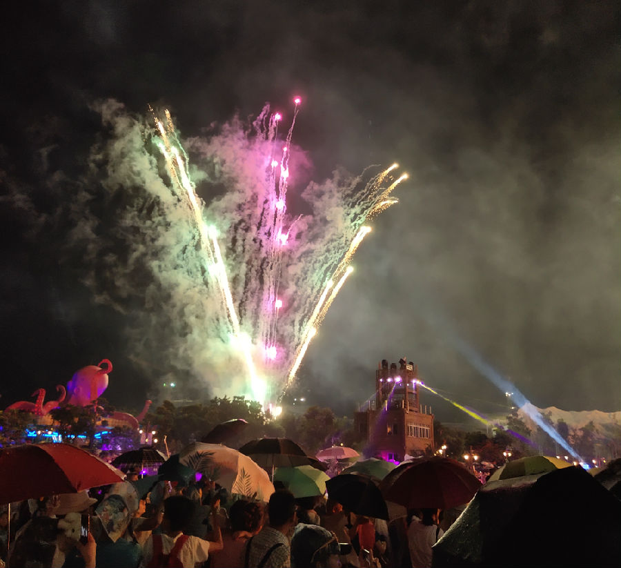 游玩的時間總是過得那么快,夜幕降臨時,大家帶著愉悅的心情補充完能量后,小憩片刻又開始欣賞“海洋保衛戰”。呈現的是大型煙花表演、絢麗的激光與宏大的爆破場景;噴泉隨著音樂的旋律,忽高忽低,迭宕起伏,令人賞心悅目;高難度的水上飛人演出,特技摩托艇與“鯨鯊”飛馳,儼然一場好萊塢實景大片,締造視聽沖擊力十足的感官享受!在一聲巨大爆破聲和一片沖天的火光節奏下,熱鬧又喜慶的一天落下帷幕,同事們結束了一天愉快的旅程。