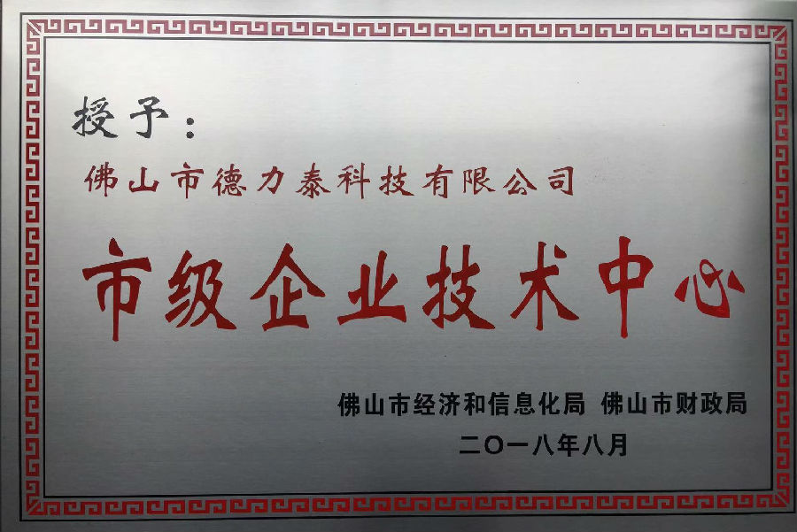 近日,佛山市高新技術產(chǎn)業(yè)協(xié)會有關負責人代表佛山市經(jīng)濟和信息化局授予佛山市德力泰科技有限公司“市級企業(yè)技術中心”牌匾,并予以祝賀!