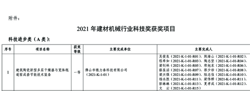 近日,通過申報、評審、公示、公布等環節,德力泰研發的“建筑陶瓷新型多層干燥器與寬體輥道窯成套節能技術裝備”項目,榮獲2021年建材機械行業科技進步一等獎。
