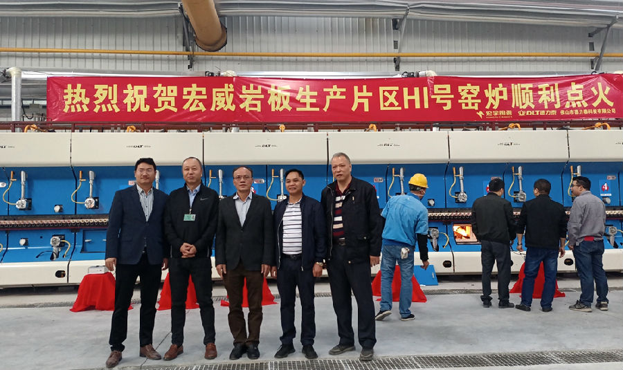 宏宇集團廣東宏威陶瓷總經理陳華生、巖板片區部長黃廣金攜員工代表及力泰品牌銷售總監吳俊良、華南銷區經理謝志平等一行人,在宏威陶瓷火熱的氛圍中齊聚一堂,共同見證點火儀式。
