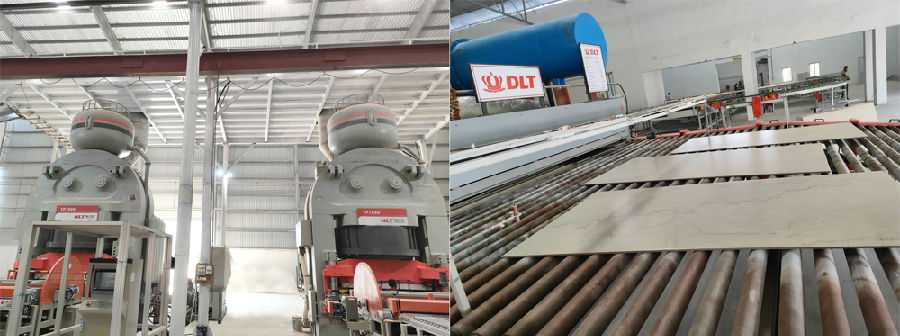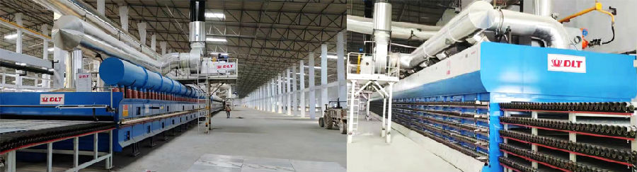 該生產線含恒力泰YP7890自動液壓機1臺,德力泰工業“4.0能效標桿數智時代”DFC燒成窯、DHD-EM系列五層干燥器、DHD-E1釉線干燥器、DHD-E1-A窯前干燥器及成套輔機。主要生產800*800mm、800*1600mm等規格,厚度 9 -12 mm的全拋釉磚,日產量1.5萬m2。