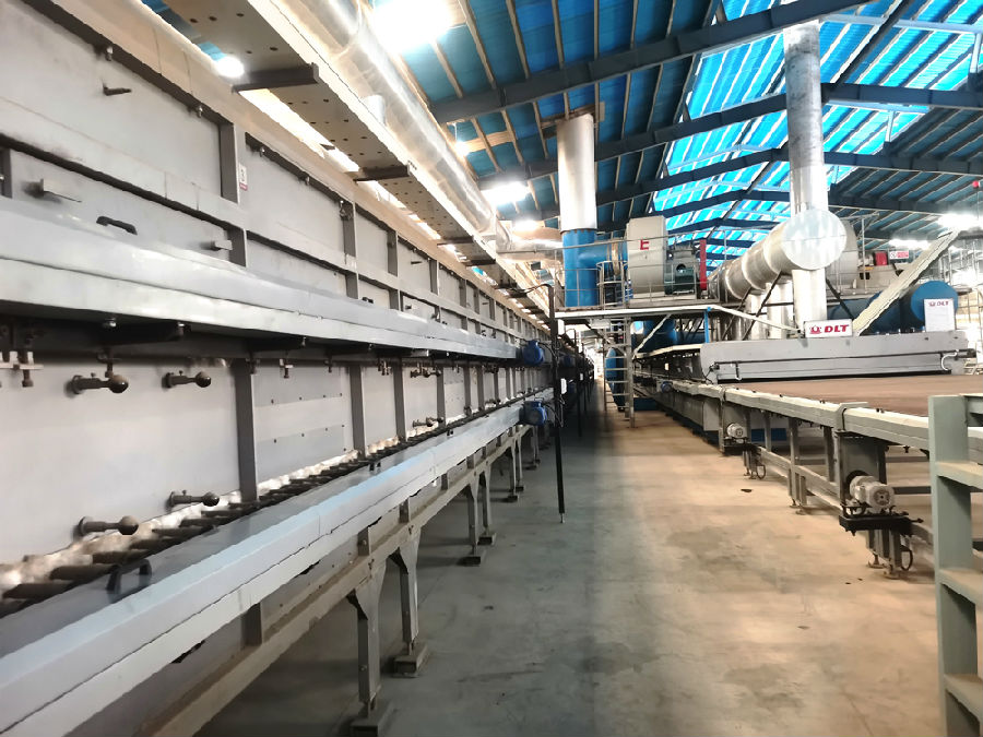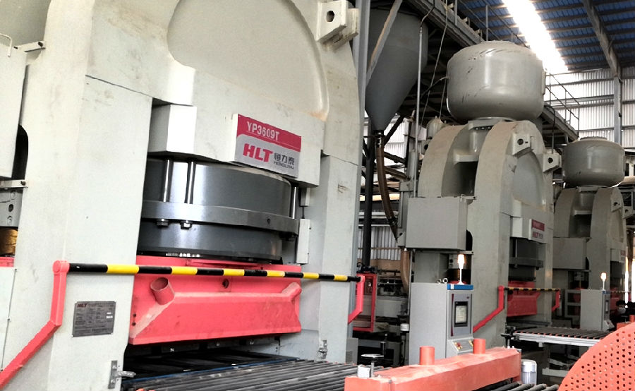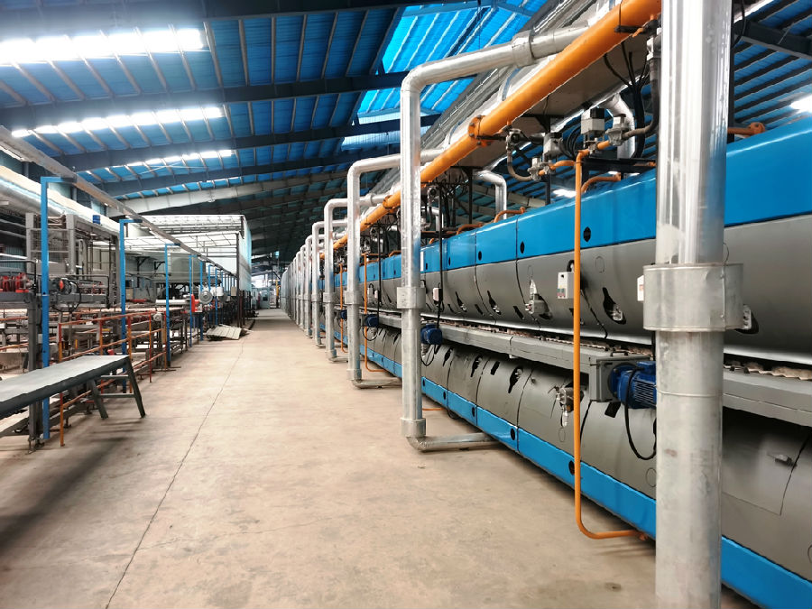 意家是越南本土知名的陶瓷生產(chǎn)商,經(jīng)過多方比較與考察后,在本項目中選用的力泰裝備含恒力泰3臺YP3609T自動壓機、德力泰一條自循環(huán)雙層干燥窯、一條阿爾法藍全覆蓋面板“4.0能效標(biāo)桿數(shù)智時代”燒成窯及釉線等成套輔機設(shè)備。