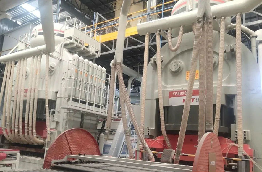 此次全新簽約的兩條生產(chǎn)線項目,宏宇集團選用了兩臺恒力泰YP90系列中的王牌機型YP8890自動液壓機、德力泰兩條高端“能效數(shù)智”雙標桿燒成窯,主要生產(chǎn)750*1500mm、900*1800mm等規(guī)格的高品質(zhì)無縫鋪貼全拋釉產(chǎn)品。