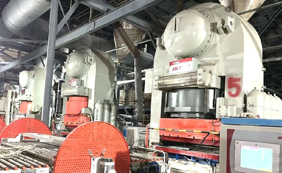 為能滿足消費升級與人群體驗的品質化需求,迎合更高端化的市場趨勢,第二條現代化技改整線中的核心裝備經過調研對比后攜手力泰陶機,包括恒力泰暢銷機型YP4009自動液壓機四臺,德力泰一條工業“4.0能效標桿數智時代”DFC燒成窯(W3100/L336M)、一條EM系列高效節能自循環四層干燥器及窯前干燥器。主要生產規格為600*600mm、800*800mm、600*1200mm,厚度8-10mm的高品質仿古磚,設計產量33000 m2/天。