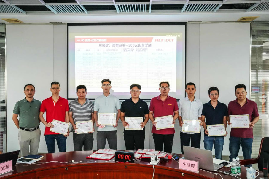 接著,在各領導的評比中角逐出以下精益改善課題獎項:榮獲重大精益改善課題一等獎的是《德力泰科技數字化智能車間打造》,該課題在數字化智能化方面取得了顯著成果;二等獎為《YPL2000B1周期縮短精益改善》,有效縮短了生產周期,提升了生產效率;三等獎則是《關鍵設備OEE提升改善》,課題針對關鍵設備進行了優化,顯著提高了設備綜合效率。此外,《技術二部設計計劃達成率提升》和《擠壓筒熱入工序廠內自制改善》榮獲重大精益改善課題優秀獎,分別在設計計劃達成和工序自制方面取得了優異表現。隨后,秦總為這些獲獎課題頒發獎項,并向所有參與精益改善工作的員工表示衷心的感謝和崇高的敬意。